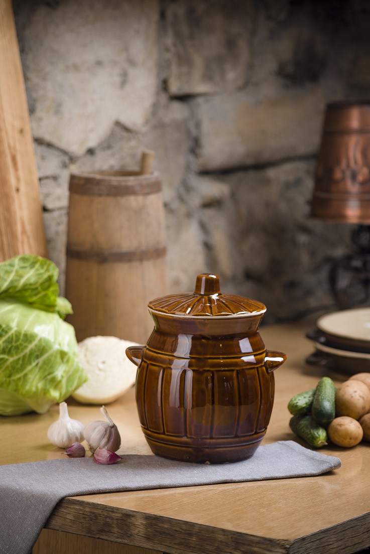Beczka o pojemności 2,7 litra, wykonana została z wysokiej jakości materiału.Naczynie z zewnętrznej i wewnętrznej strony pokryte jest szkliwem dzięki któremu nie reaguje z kwasami więc idealnie nadaje się przygotowywania zakwasu, ogórków kiszonych.Dzięki klasycznemu wzorowi wkomponuje się w każde wnętrze.Produkt przeznaczony jest do kontaktu z żywnością.Dostępne są również inne wielkości i wzory.W naszym asortymencie posiadamy pokrywkę idealnie pasującą do beczki. Z uwagi na ręczną produkcję, produkty mogą się nieznacznie od siebie różnić.