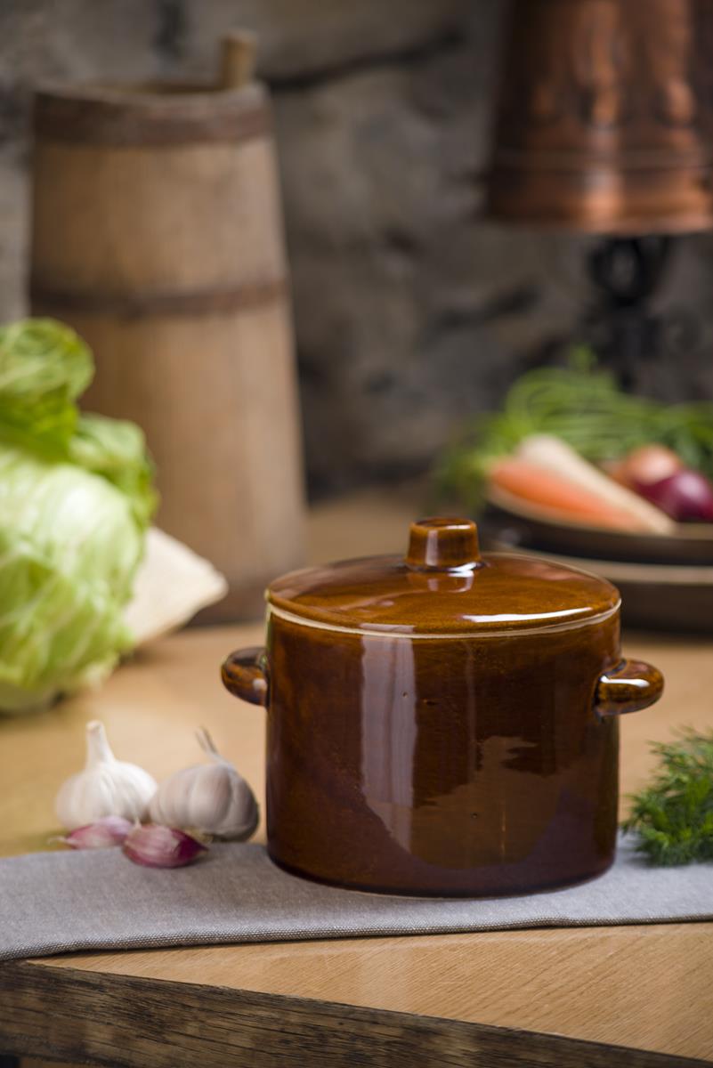 Wysoki garnek z ceramiki wysokiej jakości, malowany na ciemny brąz. Wyrób posiada efekt głębokiego połysku oraz odporność na wiele kwasów, uzyskuje je poprzez proces szkliwienia.Dzięki temu również nie sprawia problemów podczas mycia i czyszczenia. Idealnie nadaje się do przygotowywania potraw jednogarowych, zapiekanek czy do efektywnego podania jakiejś potrawy w restauracji czy w domu. Tradycyjny wygląd sprawia, że z łatwością wpasuje się w każdy wystrój. Produkt przeznaczony jest do kontaktu z żywnością. Dostępne są również inne wielkości. z uwagi na ręczną produkcję, produkty mogą się nieznacznie od siebie różnić.