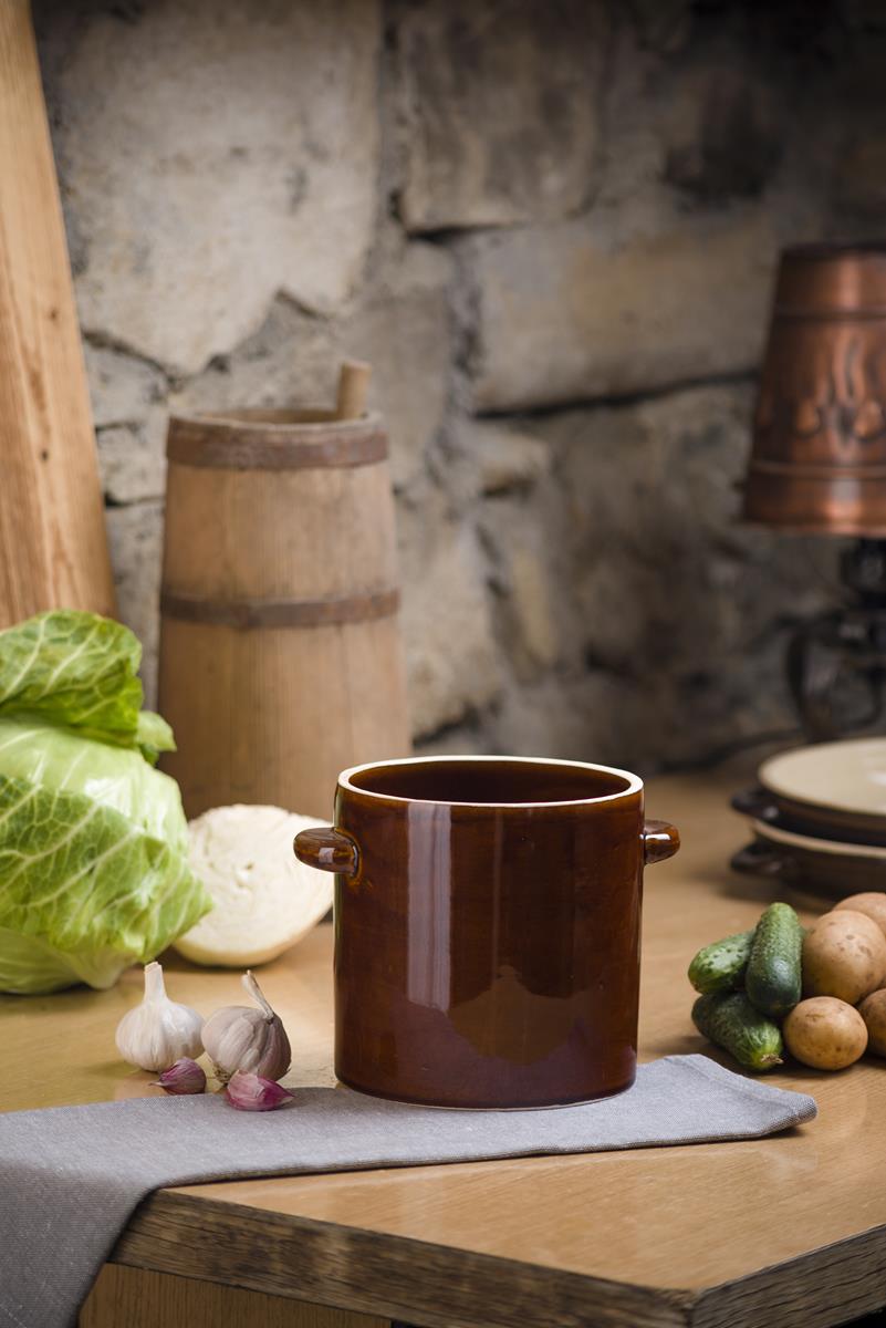 Wysoki garnek z ceramiki wysokiej jakości, malowany na ciemny brąz. Wyrób posiada efekt głębokiego połysku oraz odporność na wiele kwasów, uzyskuje je poprzez proces szkliwienia.Dzięki temu również nie sprawia problemów podczas mycia i czyszczenia. Prosta i schludna budowa sprawia, że nadaje się zarówno od przyrządzania potraw czy kwaszenia różnorakich rzeczy, ale także świetnie sprawi się na kuchennym blacie jako stylowy dodatek w którym można coś schować np. makaron. W naszej ofercie posiadamy pokrywkę idealnie pasującą do tego garnka. Produkt przeznaczony jest do kontaktu z żywnością. Dostępne są również inne wielkości. z uwagi na ręczną produkcję, produkty mogą się nieznacznie od siebie różnić.