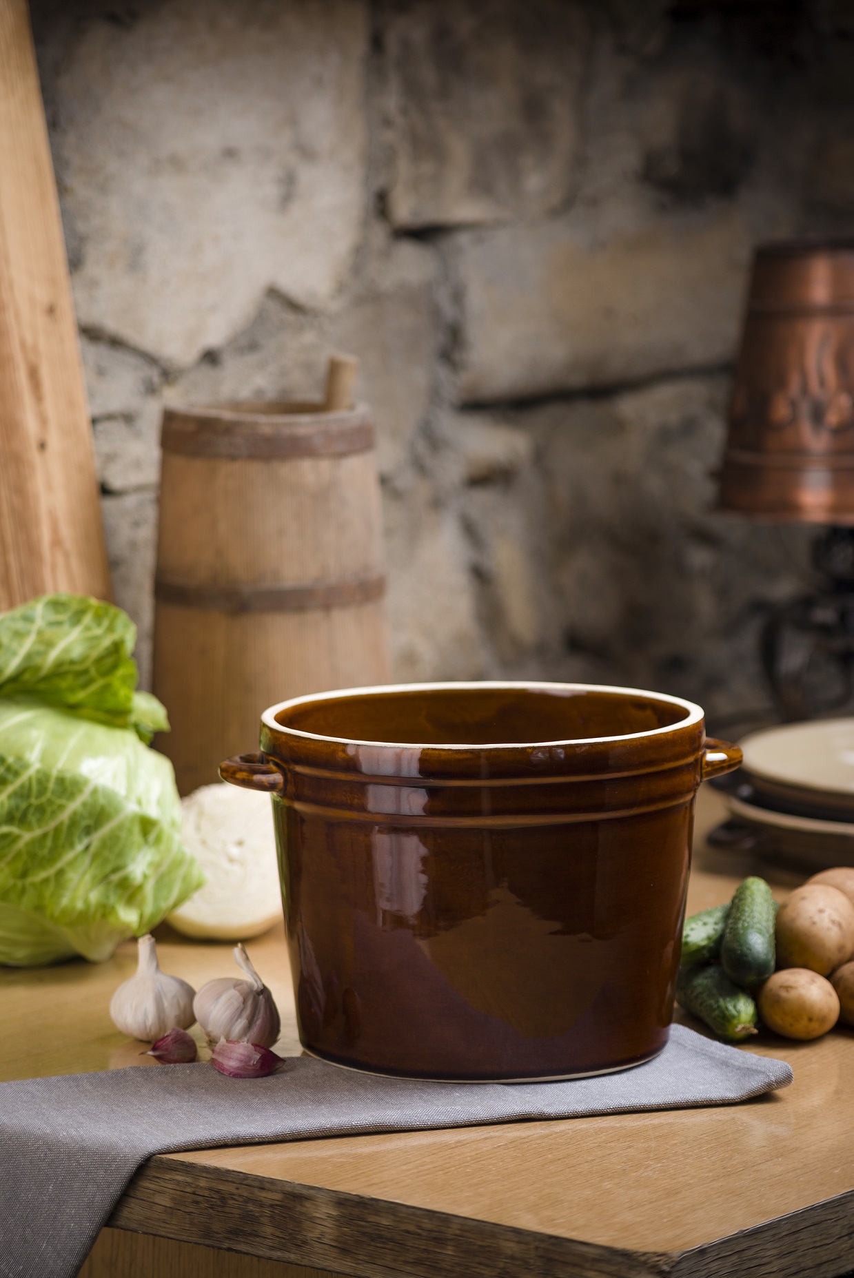 Ceramiczny garnek o pojemności 6 litrów wykonany został z wysokiej jakości materiałów.Pokryty warstwą szkliwa nadającą mu połysk i stonowany kolor, może być myty w zmywarce oraz używany w piekarniku.Idealny do przygotowywania wszelkiego rodzaju kiszonek oraz do peklowania mięsa.Nie pochłania i nie oddaje zapachów więc przyrządzone w nim przetwory będą miały wyłącznie swój oryginalny zapach i smak.Garnek występuje również w zestawie z pokrywką. Produkt przeznaczony jest do kontaktu z żywnością. Z uwagi na ręczną produkcje, produkty mogą się od siebie nieznacznie różnić.