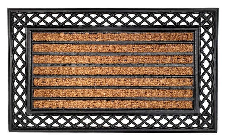 Wycieraczka wykonana z naturalnych włókien kokosowych i gumy wysokiej jakości, zapewniającej właściwości antypoślizgowe. W centralnej części guma miesza się z plecionymi włóknami, a na obrzeżach jest guma, ułożona w ozdobne wzory. Świetnie nadaję się przed drzwi do domu czy biura, ale odnajdzie się też we wnętrzu budynku.