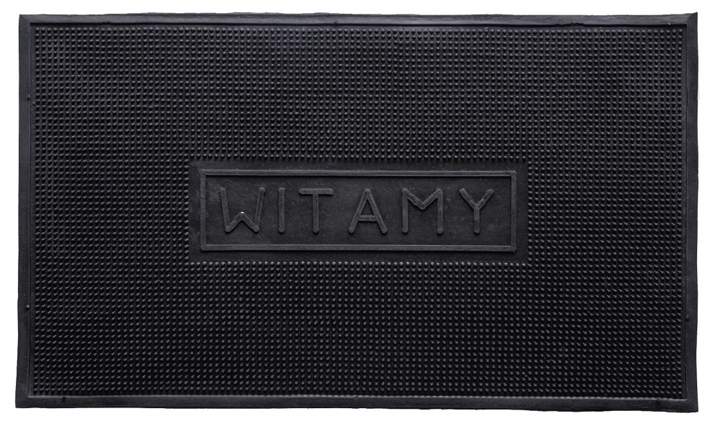 Klasyczna mata wejściowa, wykonana z wysokiej jakości gumy, trudno ścieralnej, odpornej na warunki atmosferyczne oraz antypoślizgowej. Wypełniona jest wypustkami które pomagają podczas czyszczenia obuwia przed wejściem do budynku, na środku jest element graficzny, napis „ WITAMY”. Nie sprawia problemów w czyszczeniu, odporna na zabrudzenia i plamy.